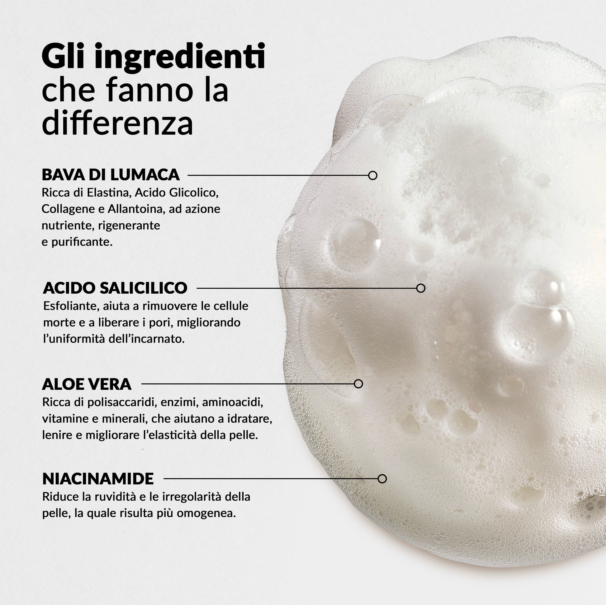 Niacinamide completa la formula, contribuendo ad una pelle più luminosa e ad un incarnato più uniforme.